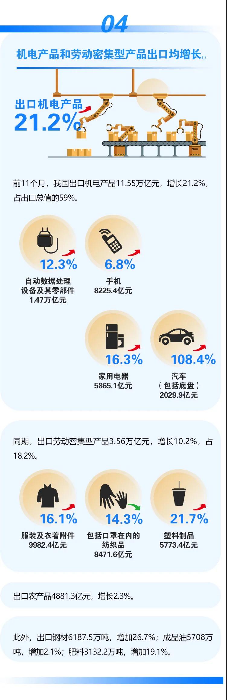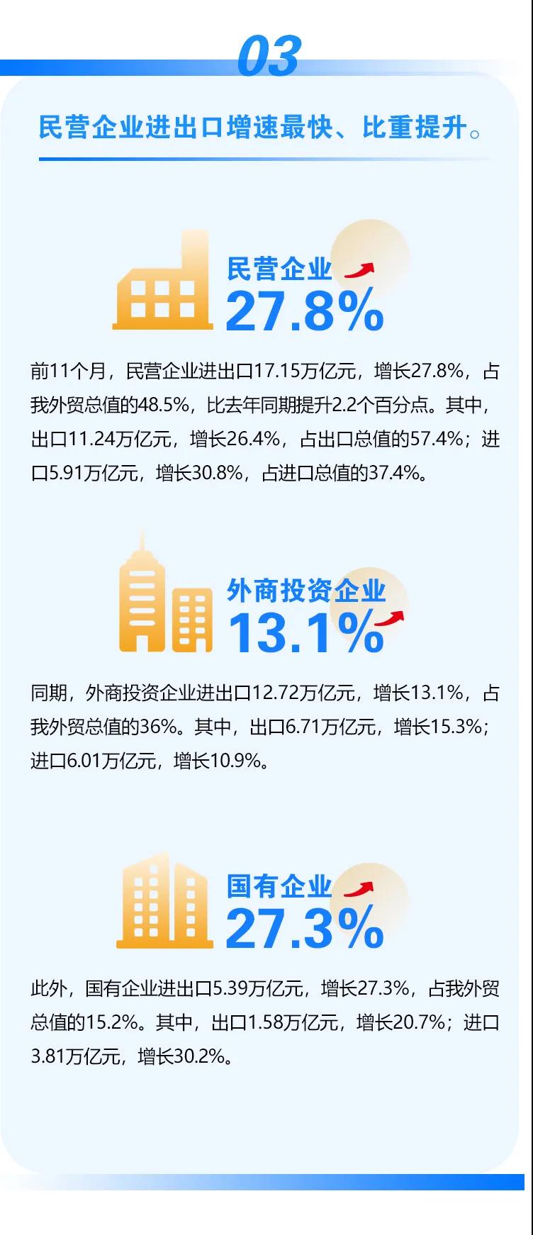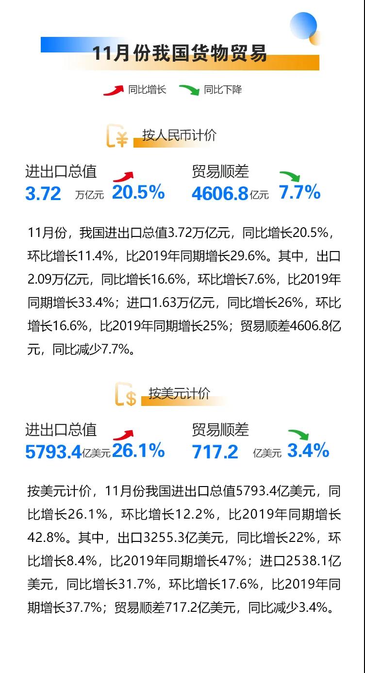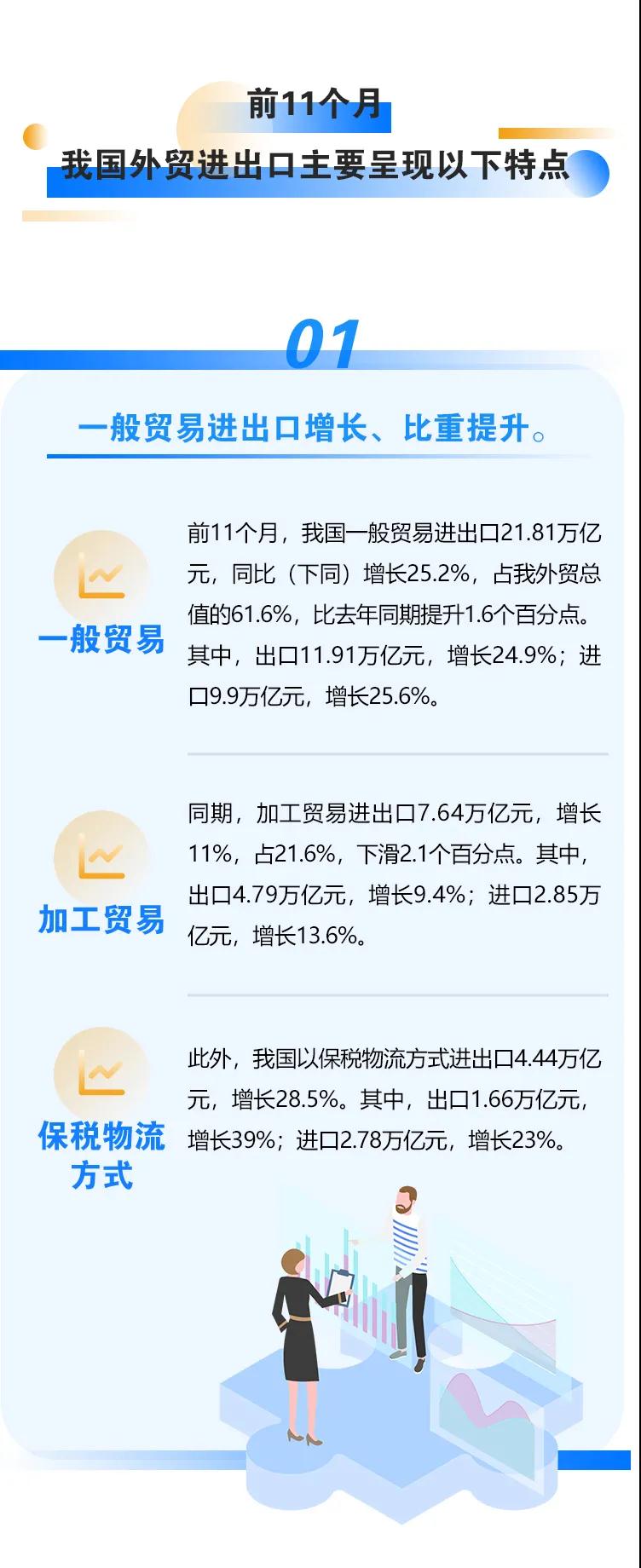 我国2021年前11个月外贸进出口情况
